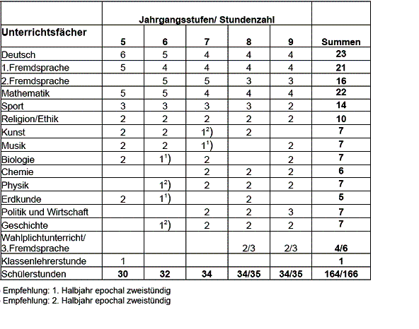* Sport 2-stündig bis zur Bereitstellung von genügend Hallenkapazitäten bzw. vollständiger 5-Zügigkeit