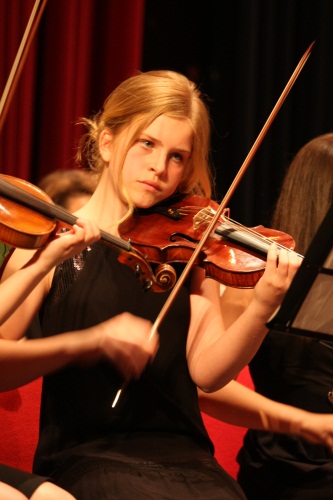 Die erste Violinistin Julia Friedrich; neben ihr: Sharon Schuler, Tim Neumann (verdeckt) und Leah Rein.