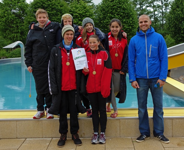 Nach jeweils 200 Meter Schwimmen, 4 km Radfahren und 1 km Laufen konnten sich beide Mixed-Staffeln gegen die insgesamt 16 Schulmannschaften aus ganz Hessen durchsetzen und dabei ihre Läufe jeweils gewinnen.