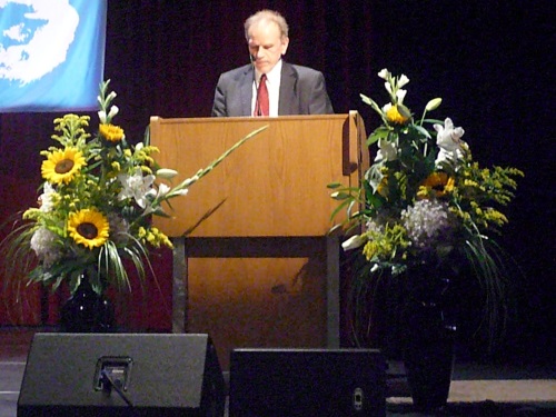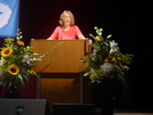 Der Begrüßung durch Schulleiterin Anke Horn folgten in jedem Block der wegen der 261 Abiturient/innen in zwei Teile geteilten Feier Begrüßungsworte von Bürgermeisterin C. Augsburger, Schülervertreter Alexander Fischer, Schulelternbeirat H. Jung sowie Fördervereinsvorsitzender B. Spano.
