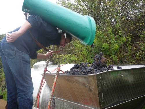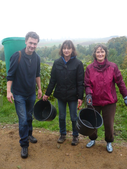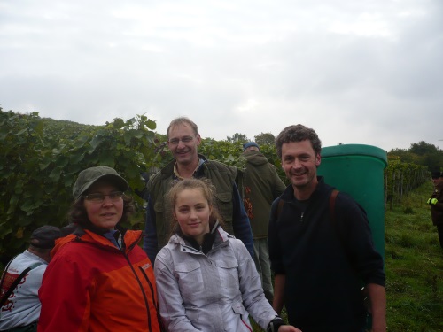 Foto: Winzer Wilhelm Hück (hinten) erklärte die korrekte Lesetechnik