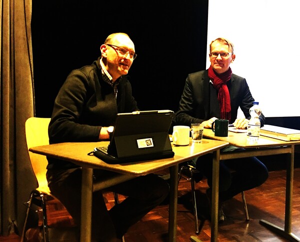 Foto (G. Pabst): links: Moderator, Fachbereichsleiter Jochen Kilb, rechts: Andreas Kossert