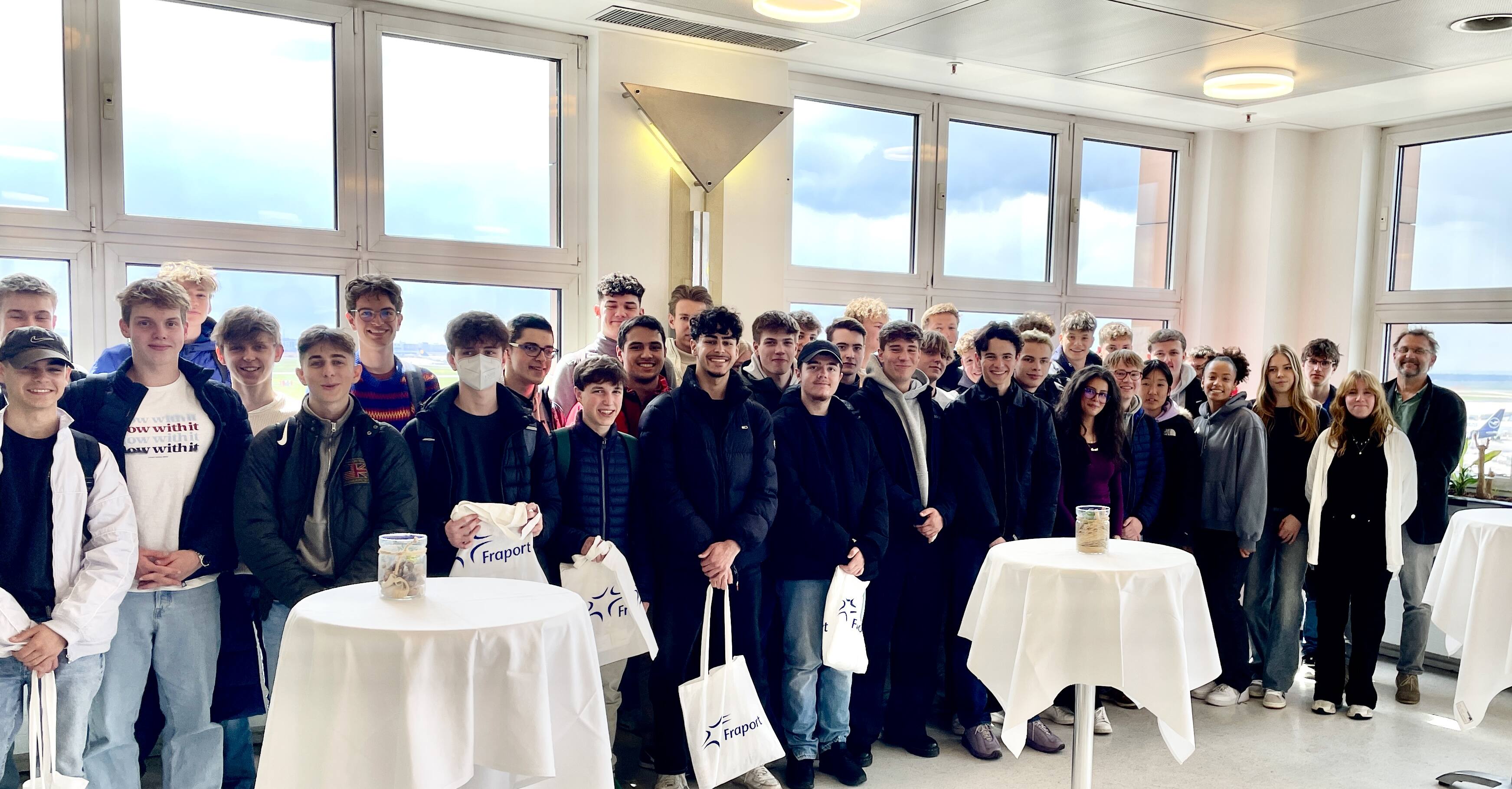 Nun kam es am 22. April zum Gegenbesuch beider Kurse beim am Flughafen ansässigen Unternehmen mit seinen rund 18.000 Mitarbeiter/innen. Der Gastgeber FraPort wartete dabei mit einem für die Schüler/innen überaus interessanten Rahmenprogramm auf.