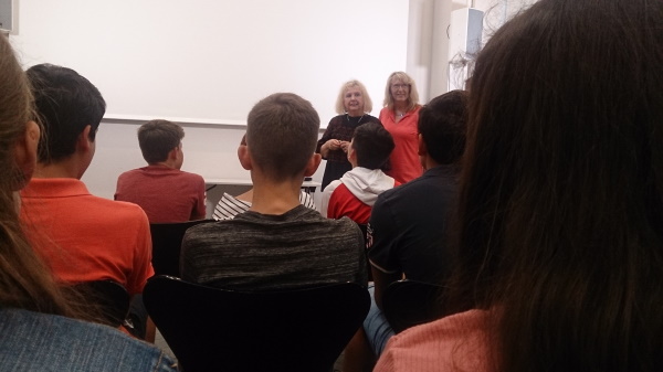 Der Vorführung folgte ein Gespräch zwischen Petra Kunik, Vorsitzender der GCJZ Frankfurt, Mitgliedern der Gesellschaft für Christlich-Jüdische Zusammenarbeit im Main-Taunus Kreis e.V., der jüdischen Gemeinde, des Teams des Jüdischen Museums, Schülerinnen und Schülern der AES sowie ihrer Eltern und einiger Großeltern sowie ihrer Lehrerin Frau Busch-Frevert.