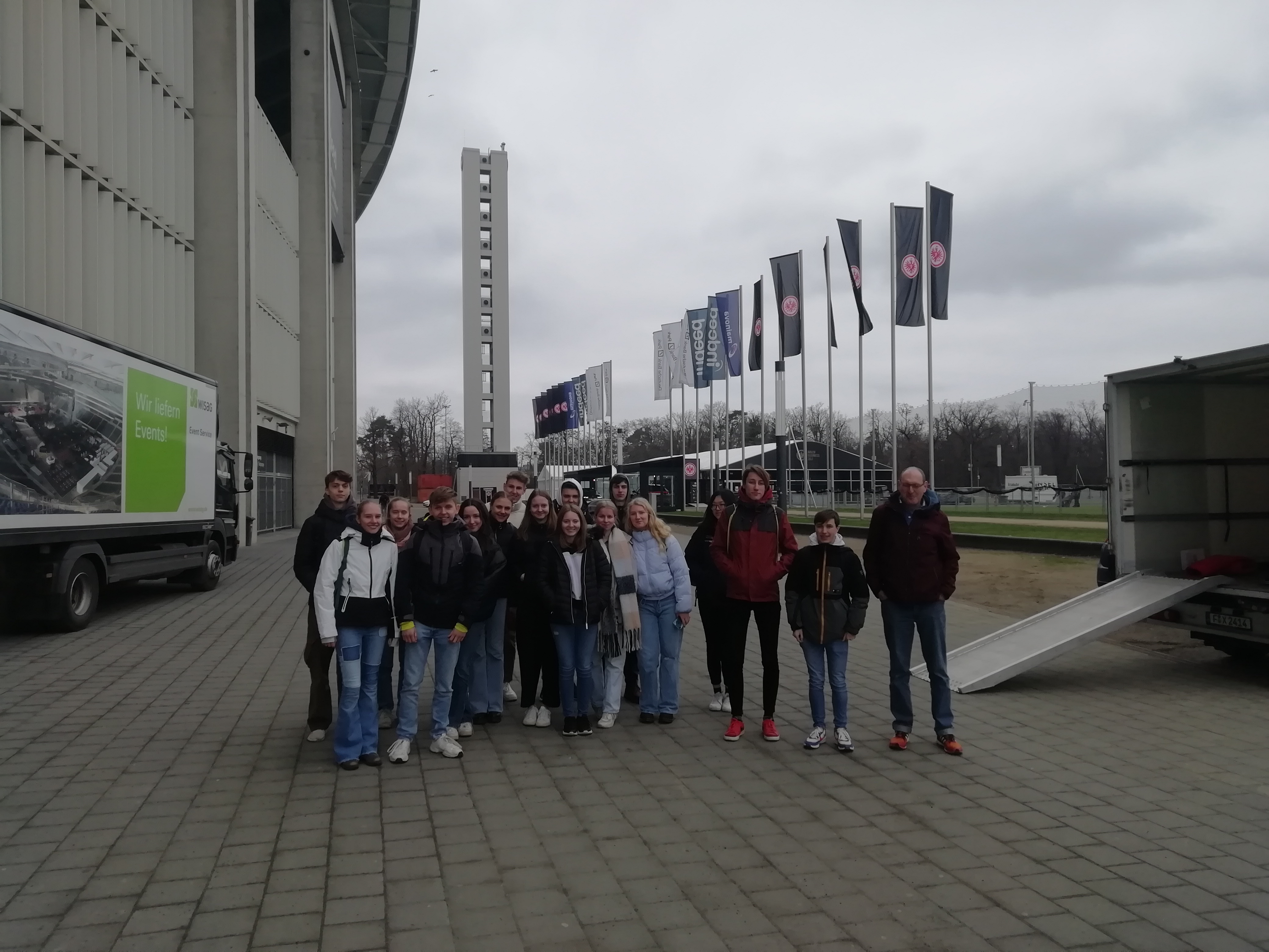 Schließlich „outete“ sich noch eine Schülerin des Kurses zur Überraschung aller als Tochter der ehemaligen Eintracht-Legende Thomas Zampach. Dies hätte kaum passender sein können, erscholl doch beim Verlesen dessen Namens durch den Stadionsprecher jedes Mal durch die Zuschauer die Antiphon „Fußballgott !“