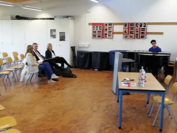 Die Preisverleihung wurde eröffnet von Noah Kim (10F), der am Flügel virtuos ein Filmthema darbot.