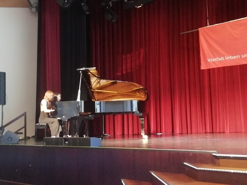 In einem musikalischen Intermezzo sang Vani Reginold Jeyasiri unter Begleitung von Jungjin Lee am Klavier die Ballade "Read all about it" von Emeli Sandé.
