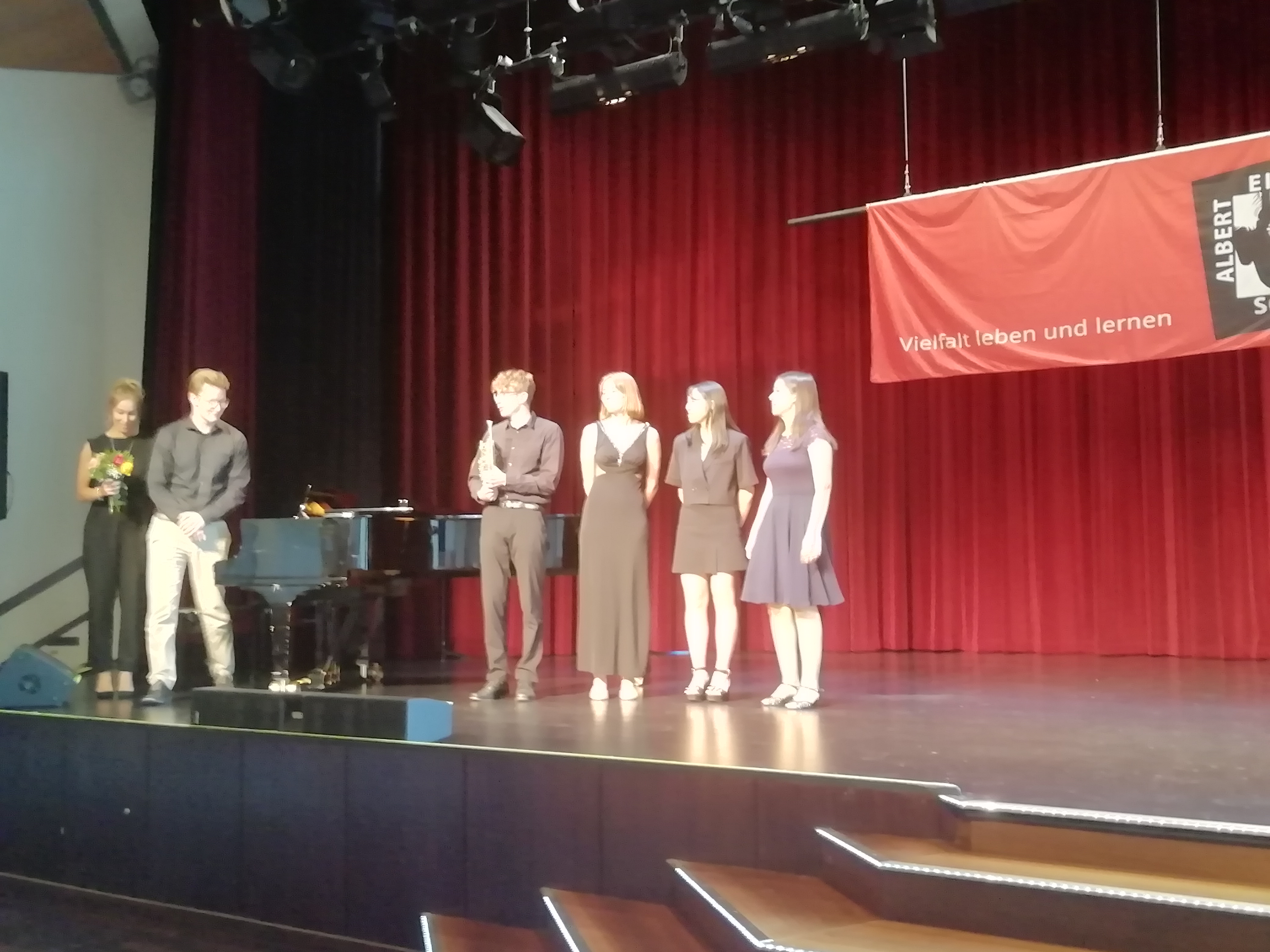 Im Anschluss würdigte sie die großartige Leistung dreier der vier 1,0-Abiturient/innen: