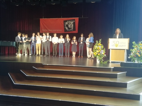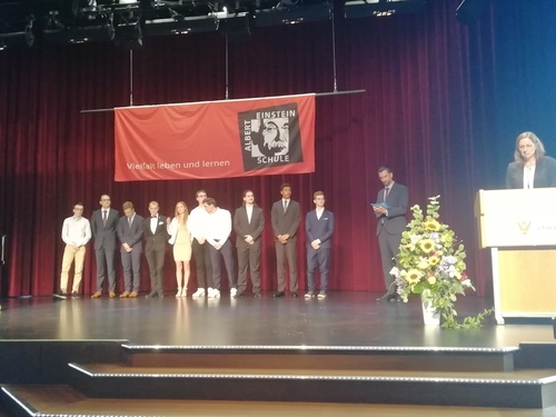 Kurz darauf wurde Alice Nöltgen aufgrund ihres sozialen Engagements während ihrer Schulzeit (auch sie fungierte u. a. ein Jahr lang als Schulsprecherin der AES) von Schulleiterin Anke Horn mit dem Preis "Einstein sozial" prämiert.