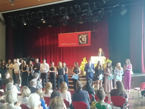 Eine besondere Ehrung ist in jedem Jahr die Verleihung der AbiBac-Zeugnisse, welche u. a. zum Antritt eines Studiums an einer französischsprachigen Universität berechtigen. Aus der Hand des Französisch-Leistungskurslehrers Gwenael Arbet erhielten 2022 sieben Abiturient/innen dieses Diplom.
