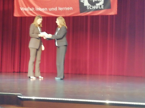 In den traditionell auf die Grußworte folgenden Ehrungen konnte Frau Dorothee Hopp seitens des Fördervereins der AES Amin Zerioh als einen der insgesamt vier 1,0-Abiturienten auszeichnen.