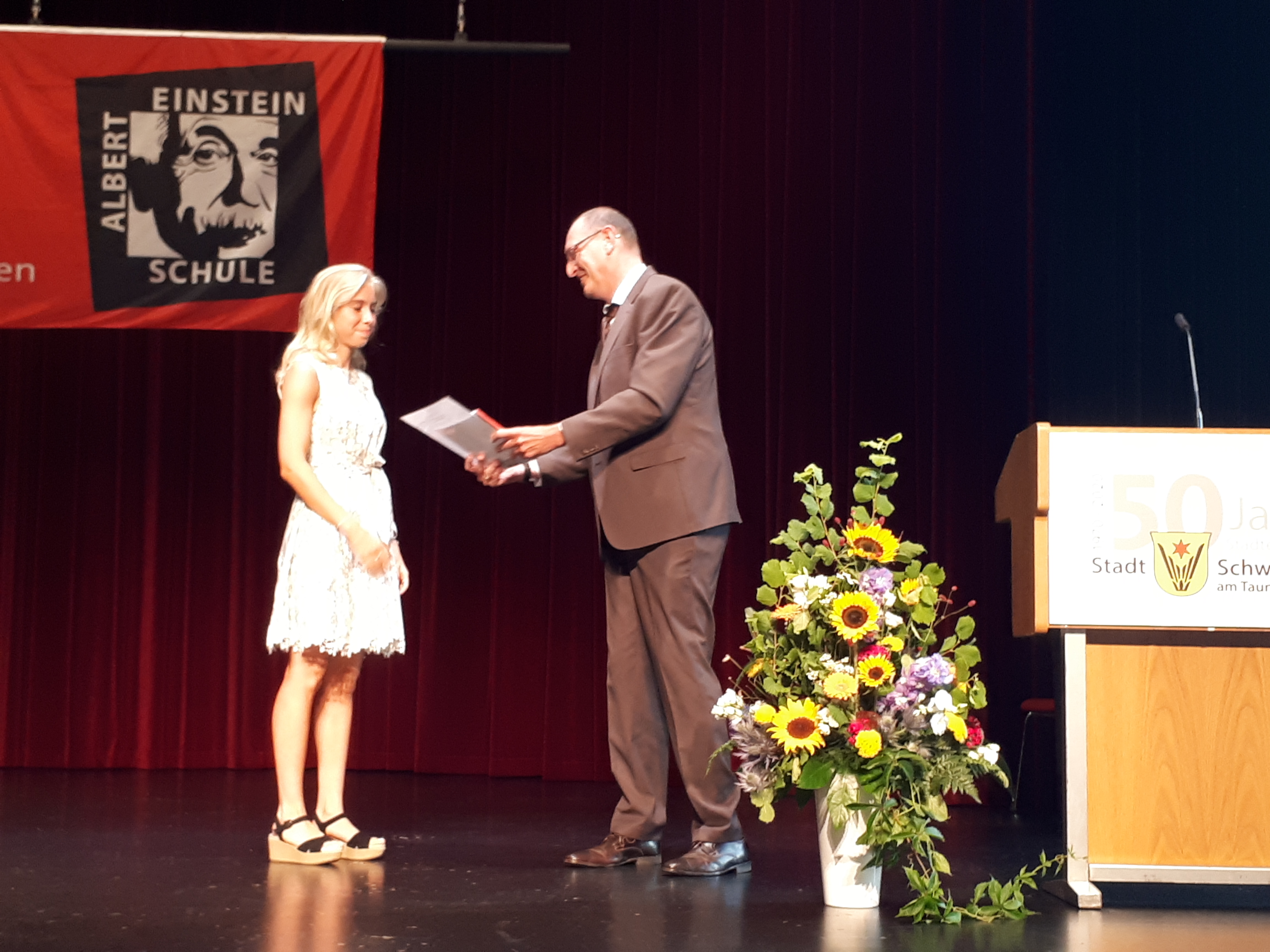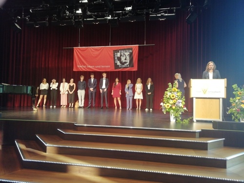 Ebenfalls traditionell vergibt Schulleiterin Anke Horn den Preis "Einstein sozial" für besonders vorbildliches Sozialverhalten während der Schulzeit. Einer der beiden Preisträger war Konstantin Stoll.