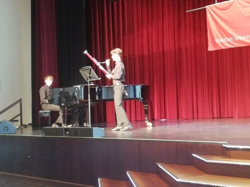 Den Beginn des 2. Teils der Veranstaltung markierte Gregor Thielecke am Fagott, begleitet von Jonathan Wilken am Klavier, die gemeinsam den 1. Satz aus der Sonate für Klavier und Fagott, Opus 168 von Camille Saint-Saens spielten.