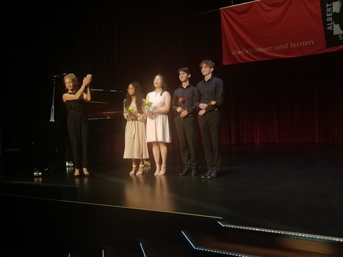Schulleiterin Anke Horn dankte am Ende noch einmal allen beteiligten Musiker/innen sowie der Leistungskurslehrerin Anni Komppa, die die musikalischen Beiträge mit den Schüler/innen koordiniert hatte.