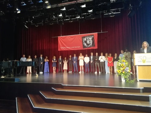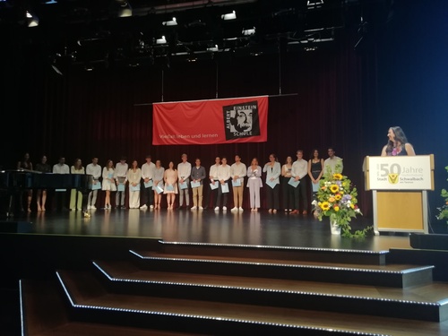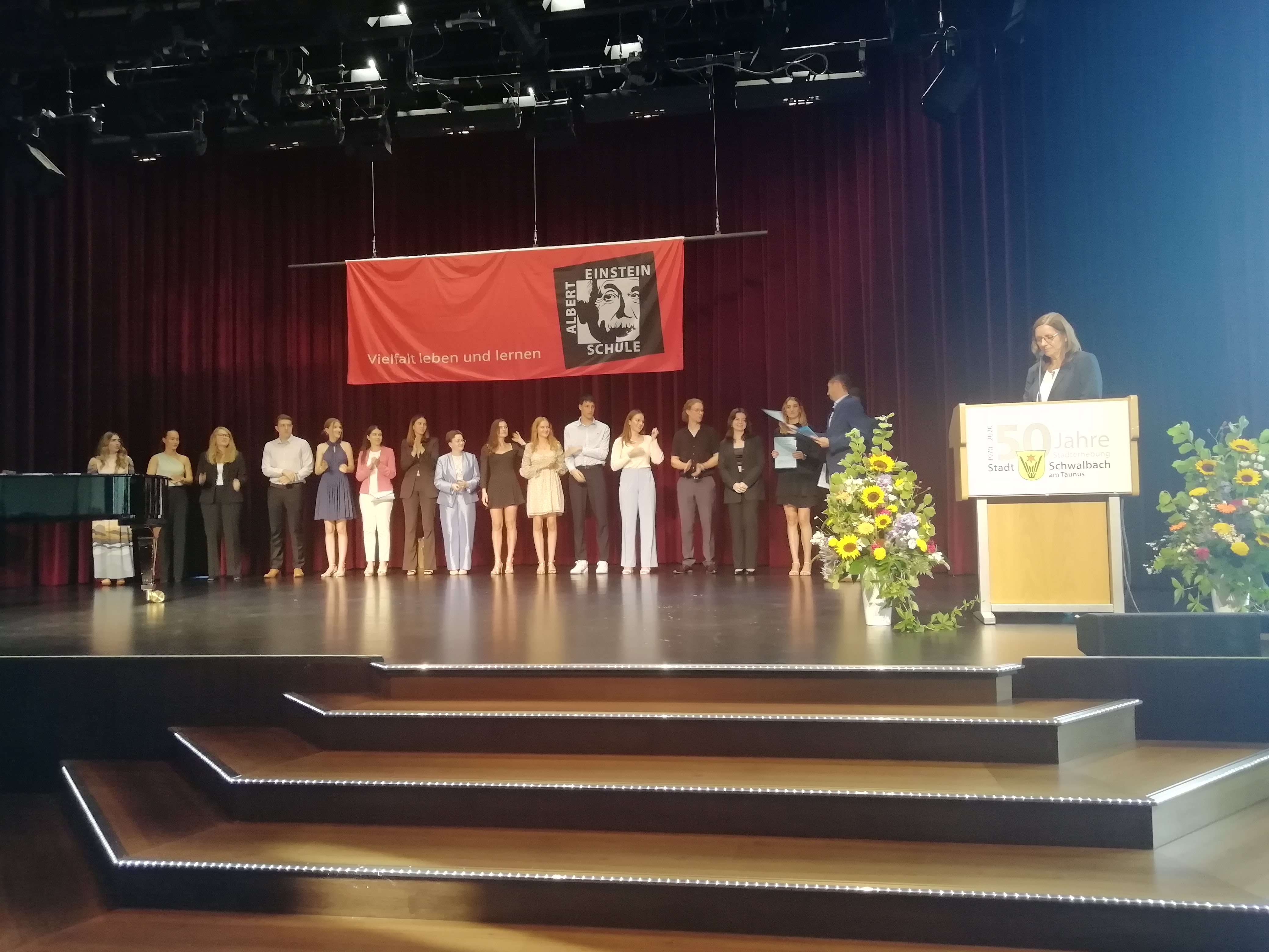 Am Freitag, 08. Juli 2022, fand die Verabschiedung der diesjährigen Abiturient/innen der AES im Rahmen einer Akademischen Feier im Bürgerhaus Schwalbach in zwei Blöcken mit Abiturient/innen aus jeweils fünf Leistungskursen statt.