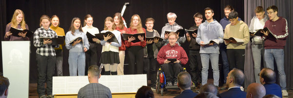Den würdigen Beginn dieser feierlichen Festveranstaltung bildete eine musikalische Darbietung: Der Oberstufenchor unter der Leitung von Stefan Riedl interpretierte das Lied "Human" (im Original von der Gruppe "The Killers").