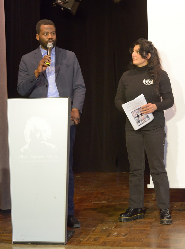 Kabala Mbaluku, Abiturient an der AES von 2013 und heute Jurist und Strafverteidiger, kam auf die Motivation zum Patenamt zu sprechen: "Ich fragte mich, wo ich Vorbild sein könne für junge Menschen, die sich in ähnlichen Situationen befinden, denen auch ich mich in der Vergangenheit ausgesetzt sah. Ich kam zur Antwort, dass ich diesen Ansprechperson und Partner sein könne und ihnen mit meinen Erfahrungen hilfreich sein könne, insbesondere wenn es um Situationen im Kontext Rassismus geht."