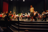 Vor der Pause zog das Kammerorchester, das sich aus den Streichern des großen Orchesters zusammensetzte, das Publikum noch einmal in den Bann mit einer sehr gelungenen Interpretation von Vivaldis berühmten „Sommer“ aus den „Vier Jahreszeiten“. Angelika Vits spielte den Violinsolopart im ersten Satz, Jaehi Chung den des zweiten und dritten Satzes - eine beachtliche Leistung, vor allem wenn man bedenkt, dass beide gerade erst ihr Abitur hinter sich gebracht haben.