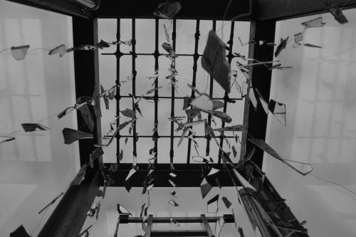 Am Wochenende 29./30.10. haben vier Schülerinnen und Schüler der Klassenstufe 13 der AES, Nele Neubauer, Josephin Hamm, Robin Hoske und Sara Tavakoli, den Glaskubus im Einkaufszentrum Limes anlässlich des Gedenkens an die Reichpogromnacht künstlerisch gestaltet.