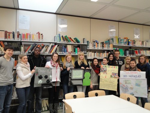Am Mittwoch, dem 18.01.2012, versammelten sich nun die Schüler des teilnehmenden Leistungskurses Französisch in der Bibliothek der Albert-Einstein-Schule vor einem Publikum aus rund 50 Personen, Schülern aus weiteren Französischkursen und Lehrern.