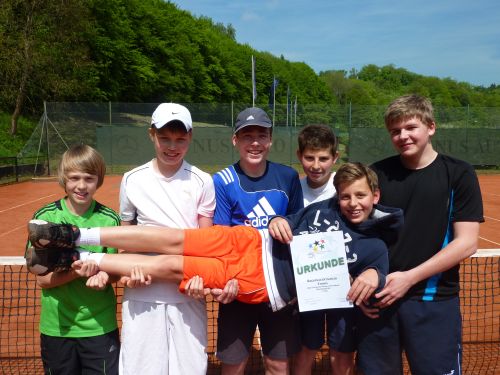 Die Tennis-Mannschaft der Albert-Einstein-Schule Schwalbach (Jungen Jahrgänge 1997-2000) traf beim Regionalentscheid des Wettbewerbs „Jugend trainiert für Olympia“ in Wiesbaden auf die Pestalozzischule Idstein und die Humboldtschule Wiesbaden.