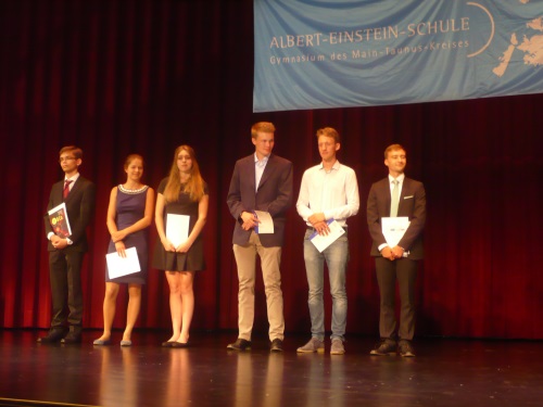Aufgrund der Größe des Jahrgangs bei Begrenztheit der Sitzplätze musste die Akademische Feier 2016 in zwei Blöcken durchgeführt werden, was der Feierlichkeit des Abends aber keinen Abbruch tat. Erneut war der Große Saal des Bürgerhauses Schwalbach gefüllt mit Abiturient/innen, deren Angehörigen und Lehrer/innen der AES.