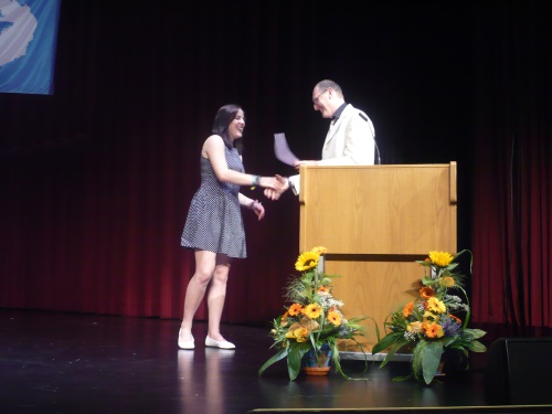 Außerdem durfte Fr. Fischbach auch den Albert-Camus-Preis für ausgezeichnete Französischkenntnisse verleihen: Dieser ging 2016 an Katharina Werner.
