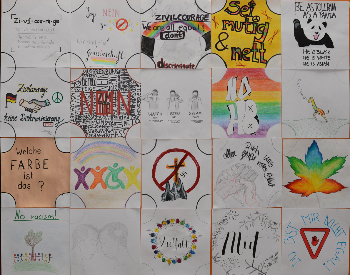 - „Ich setze mich dafür ein, dass an meiner Schule einmal pro Jahr ein Projekt zum Thema Diskriminierungen durchgeführt wird, um langfristig gegen jegliche Form von Diskriminierung, insbesondere Rassismus, vorzugehen.“