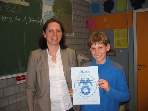 Onno Pfohl (Stufe 6) freute sich über seine Leistung, denn er erreichte mit 38,5 von 40 möglichen Punkten einen ausgezeichneten zweiten Platz und konnte seinen Erfolg als Landessieger aus dem Vorjahr bestätigen.