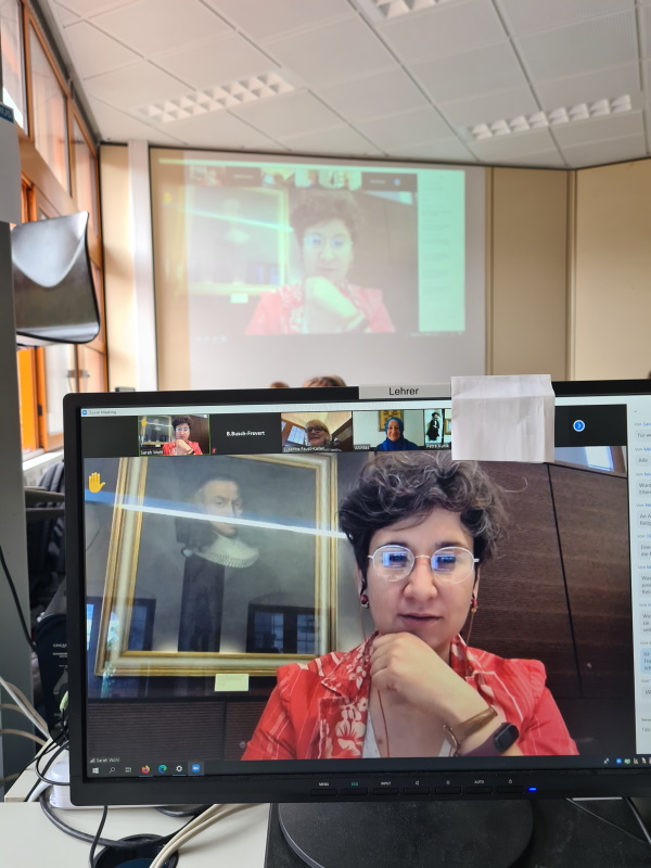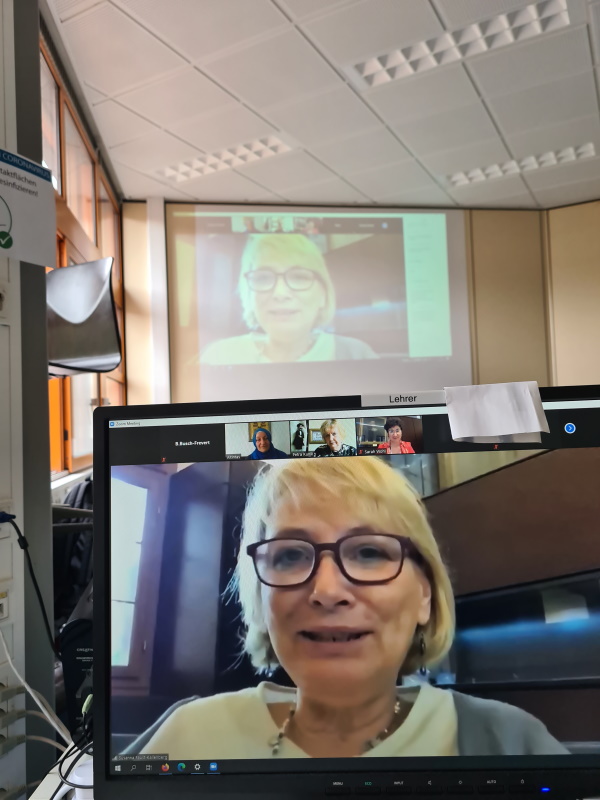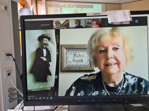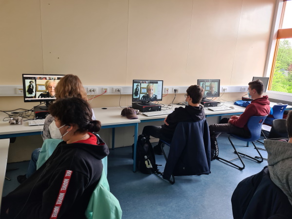 Das Gespräch wurde digital durchgeführt. Die Hälfte der Klasse befand sich im Computerraum der Schule, die andere Hälfte verfolgte das Gespräch aufgrund des Wechselunterrichts von zu Hause aus.