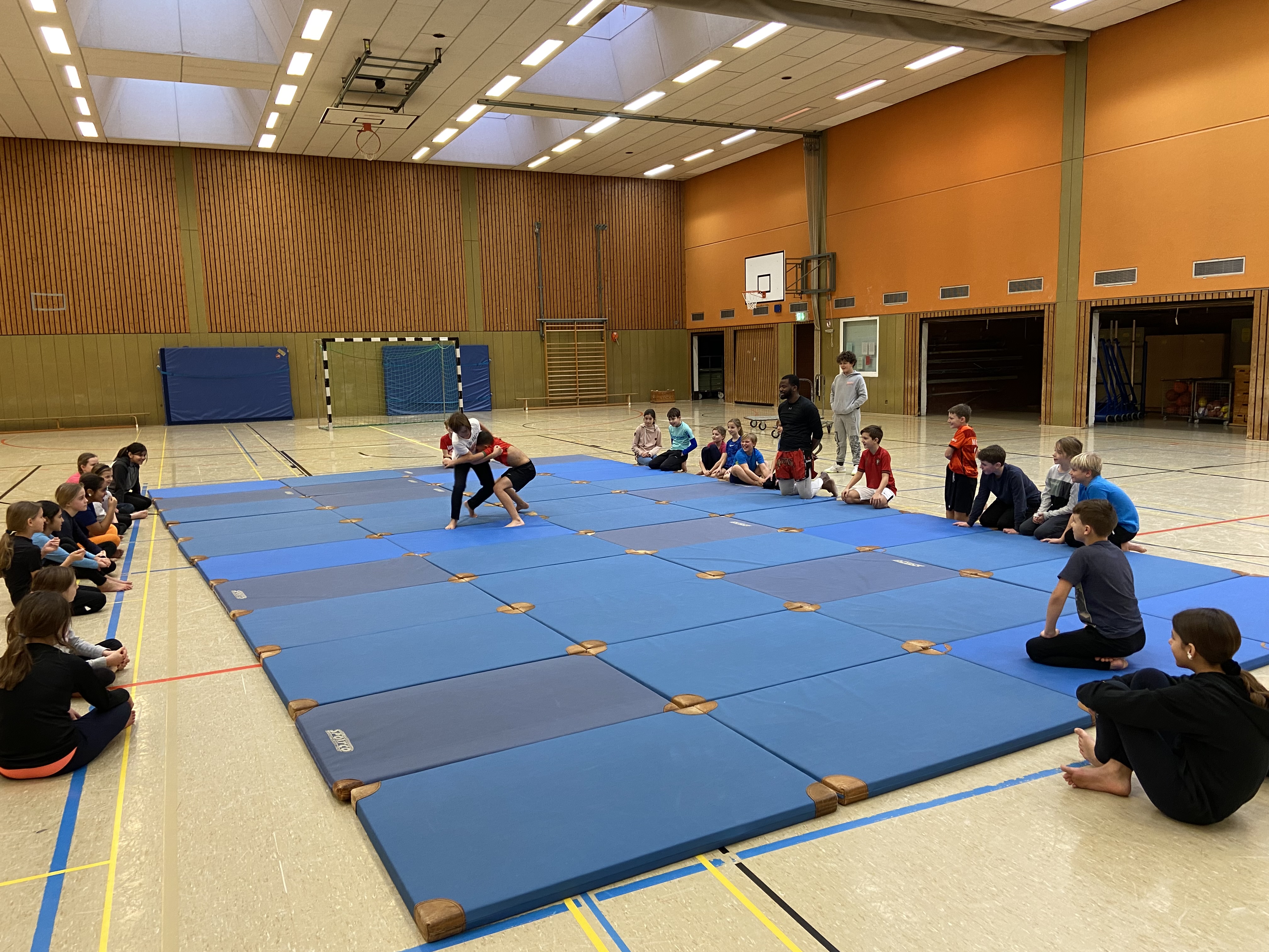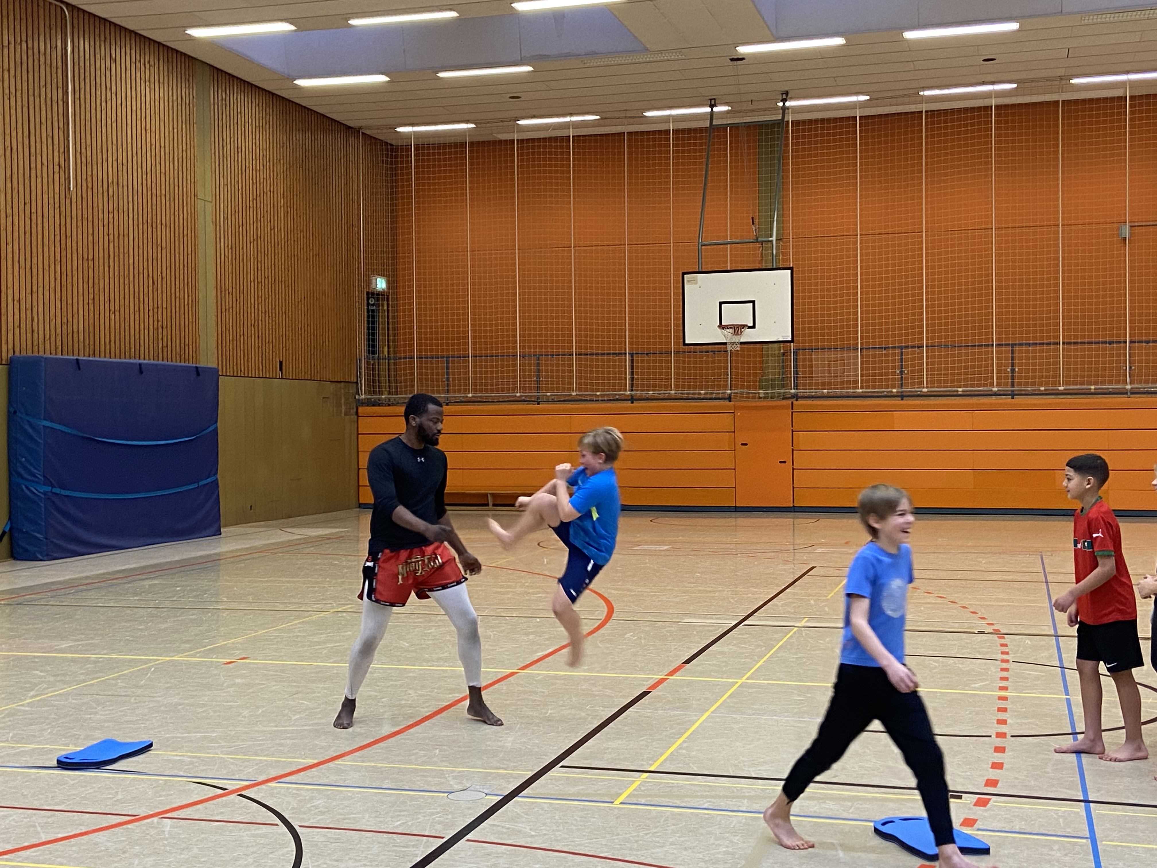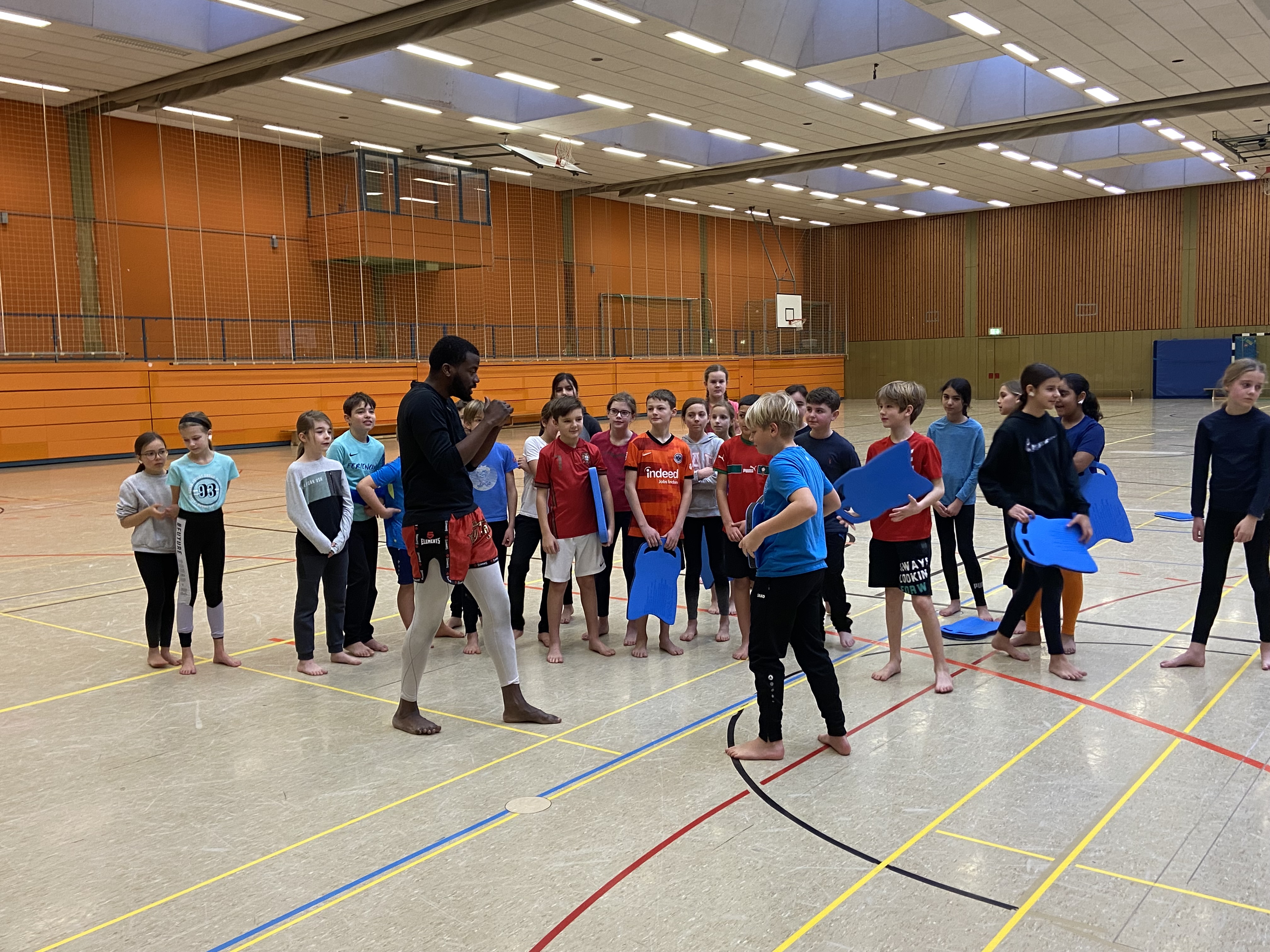 Einen Bericht unseres "Schule ohne Rassismus"-Paten Kabala Mbaluku, ehemaliger AES-Abiturient und Jurist, über seine Erfahrungen mit AES-Fünftklässler/inn/en während einer Trainingseinheit mit Kampftechniken aus dem Kickboxbereich können Sie im Folgenden lesen:
