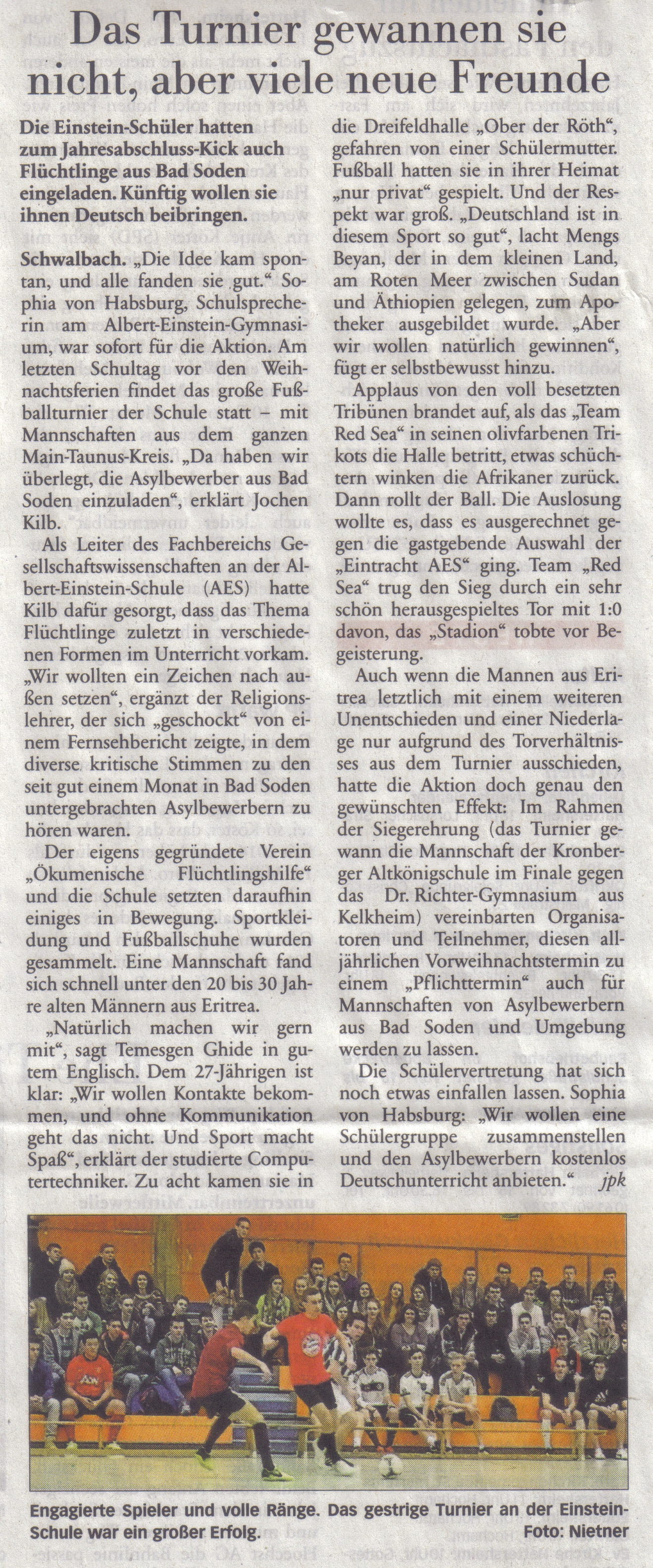 Bei der abschließenden Siegerehrung waren trotz des frühen Ausscheidens noch fünf Spieler des "Red Sea"-Teams anwesend und man vereinbarte, diesen alljährlichen Vorweihnachtstermin zu einem "Pflichttermin" auch für Mannschaften von Asylbewerbern aus Bad Soden und Umgebung werden zu lassen.