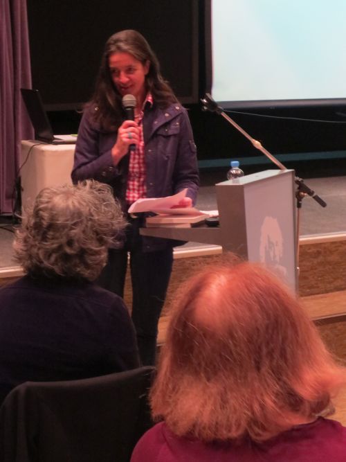 Fern Schumer Chapman beim Vortrag über ihr letztes Buch "Is It Night or Day?"