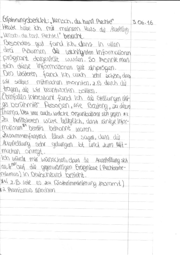 erste Schüler - Erfahrungsberichte - Ausstellung "Mensch, du hast Recht[e]" bis zum 10.06. an der AES in den Räumen 413/415/416 - "Höchster Kreisblatt" berichtet