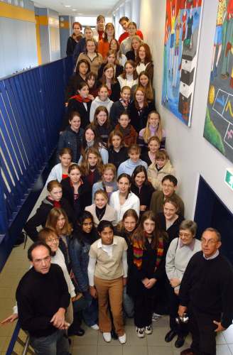 Am Samstag standen wir mit zittrigen Beinen, großen Erwartungen und ganz viel Lampenfieber am Frankfurter Flughafen. Nur ein paar von uns hatten Bilder von ihren Exchange-Partnern bekommen. So wussten die meisten nicht, was sie erwarten würde. Nun war sie da, die erste Begegnung. Dass die aus England genauso "normal" wie wir sind, hätten wir uns ja denken können. Und so war das Kennenlernen gar nicht so schwer. Schließlich können wir uns in zwei Sprachen einigermaßen gut verständigen - und wenn nicht, müssen eben die dictionaries herhalten. Nach dem ersten Tag war dann auch langsam aber sicher die Schüchternheit besiegt und man war sich gar nicht mehr so fremd. Der erste Schultag ohne Uniform war für die englischen Schüler sicherlich merkwürdig. Und als Herr Nebel seine kurze Begrüßung in Deutsch begann, sah man in ihren Augen nur lauter kleine Fragezeichen, die nach der exzellenten Übersetzung unseres Schulleiters sofort verschwanden.