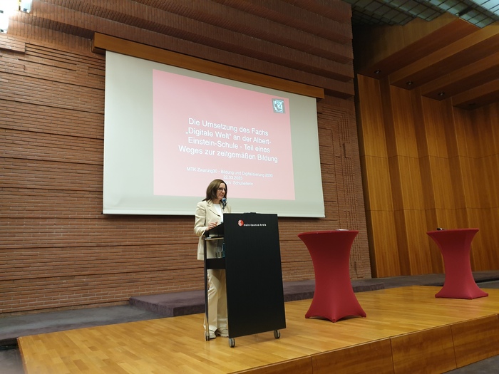 Schulleiterin Anke Horn stellte im Rahmen eines Informationsabends zum Konzept „MTK Zwanzig30“ vor, wie das neue Unterrichtsfach „Digitale Welt“ an der Albert-Einstein-Schule umgesetzt wird.