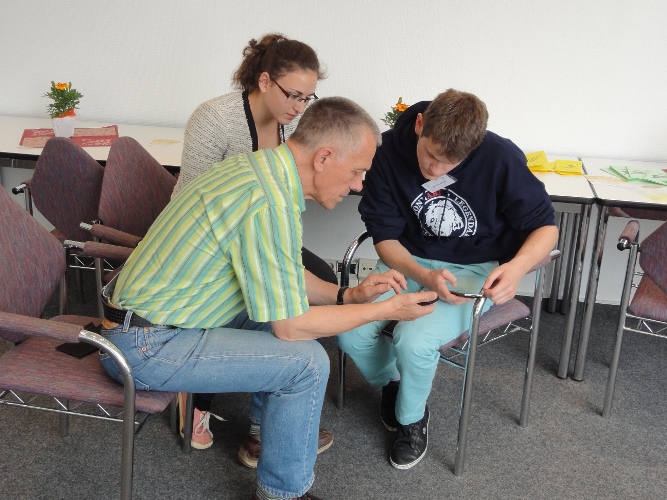 Die Schüler/innen sind als Experten in Sachen neuen Medien in der Lage, ganz praktische Fragen beim Bedienen von Handys zu beantworten, die älteren Menschen oft Schwierigkeiten bereiten.