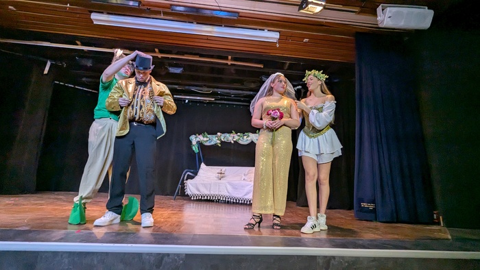 von links: Oscar Mang als Puck, Anastasia Moos als Helena, Andreas Feldhaus-Posada als Demetrius und Chanel Clemens als Elfie