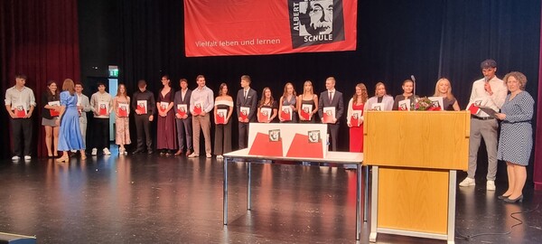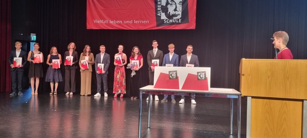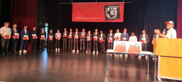 Eine Besonderheit stellten in diesem Jahr die so genannten "Nicht-Schüler-Prüfungen" statt. Dabei stellten sich Schülerinnen und Schüler dem Abitur, die sich zuvor in mehrjähriger Heimarbeit auf die Prüfungen vorbereitet hatten. 2024 war die AES diejenige Schule, an der diese Prüfungen abgenommen wurden. Drei Nicht-Schülerinnen, Fr. Brugger, Fr. Feuerer und Fr. Ulmer, bestanden schließlich das Abitur, von denen zwei bei der Akademischen Feier anwesend waren und aus den Händen von Schulleiterin Anke Horn und Oberstufenleiterin Dorothea Friedrich Ihre Reifezeugnisse freudestrahlend entgegennehmen durften.