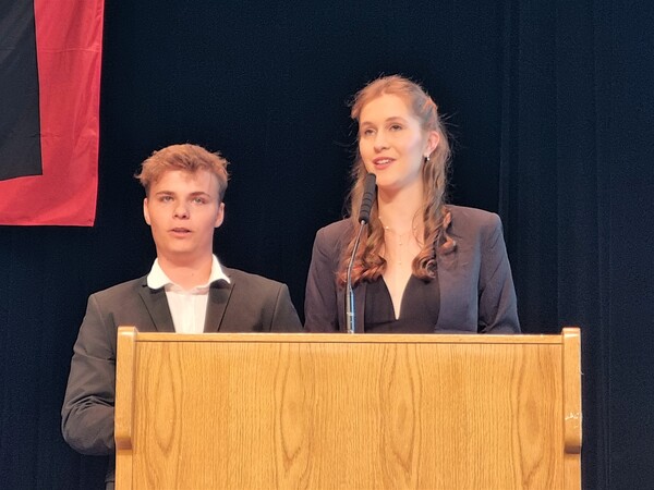 Die Schüler/innen-Rede der Abiturientinnen und Abiturienten trugen Nele Weinland und Nils Hemberger (1. Block)
