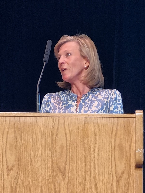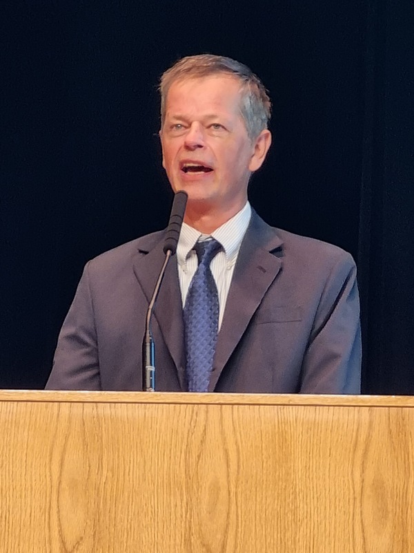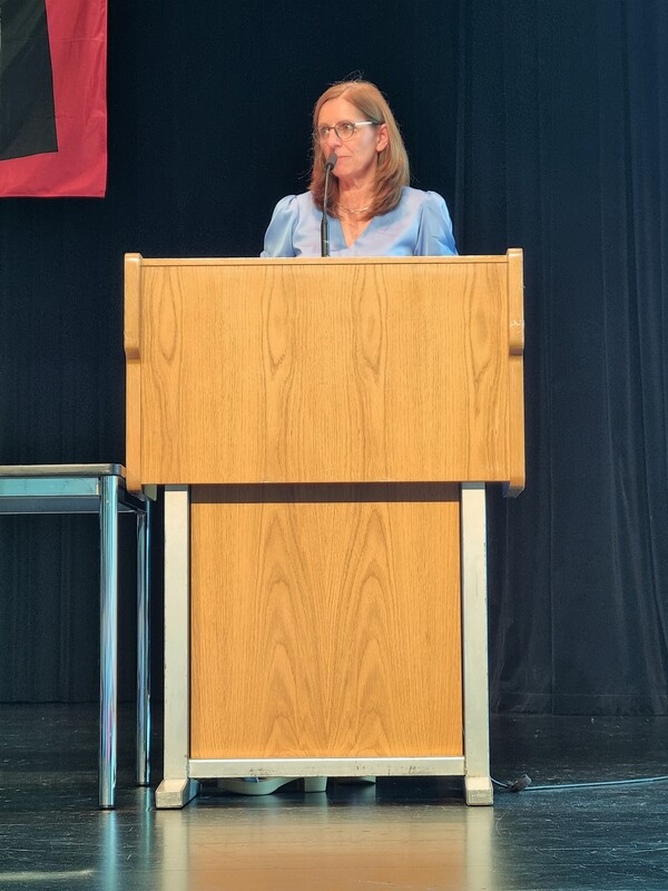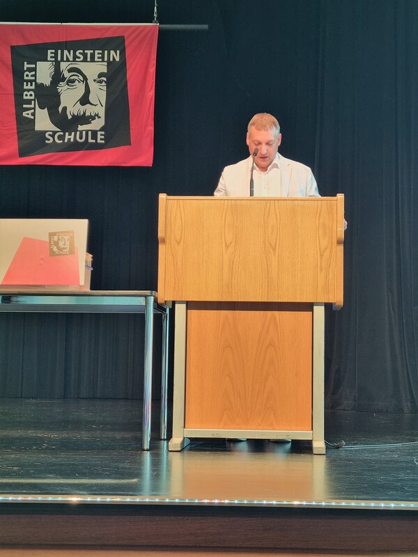 Darauf folgten Reden des Schulelternbeirates, vertreten durch Herrn Peter Kerger, sowie des Fördervereins der AES, vertreten durch Frau Dorothee Hopp.