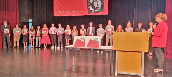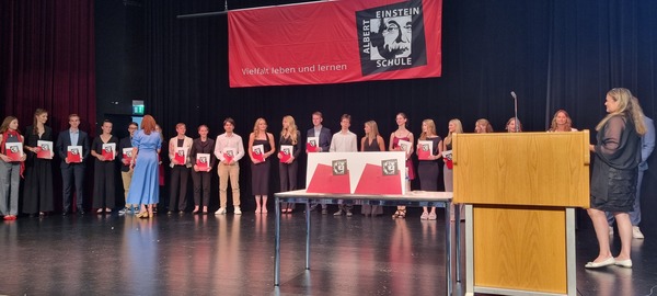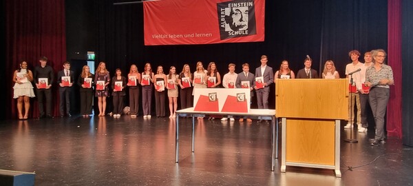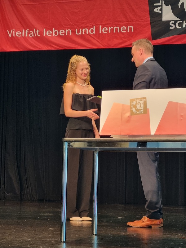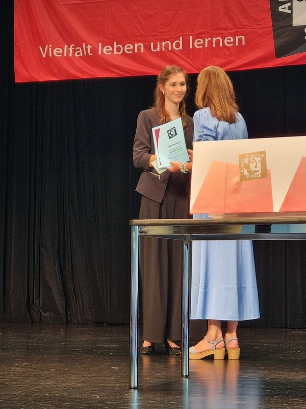 Für ihr außerordentliches inner-, aber auch außerschulische Engagement im sozialen Bereich wurde Nele Weinland von Schulleiterin Anke Horn mit dem Preis "Einstein Sozial" ausgezeichnet.