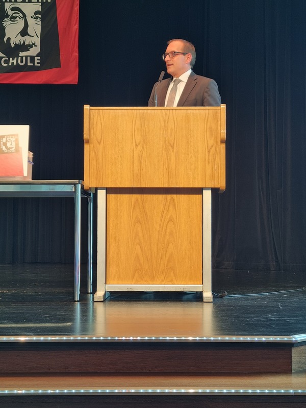 Nach der Begrüßung durch Schulleiterin Anke Horn sprachen zunächst ihre Grußworte Kreisbeigeordneter und Schuldezernent Axel Fink und die Bürgermeister von Bad Soden, Dr. Frank Blasch und von Sulzbach, Elmar Bociek.