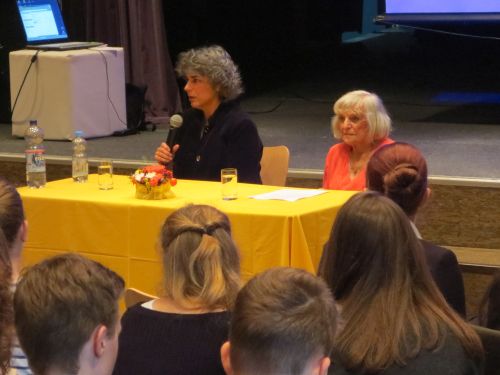 Fern im Schülergespräch, zusammen mit ihrer Mutter Edith Schumer Westerfeld, die 1938 mit 12 Jahren aus Deutschland emigrierte.
