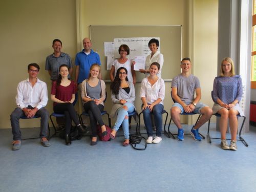 Foto: Der Französisch-LK von Frau Maak; in der hinteren Reihe von links: Hr. Arbet, Hr. Dietrich, Fr. Maak, Fr. Harlez.